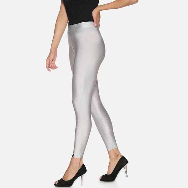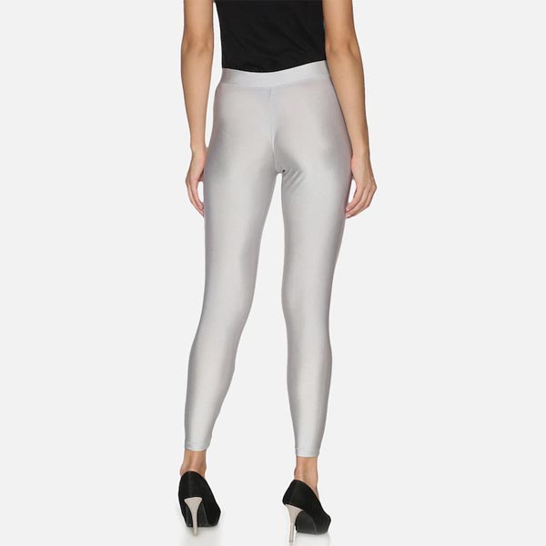 Women Silver-Colored Solid Ankle-Length Shimmer Leggings
